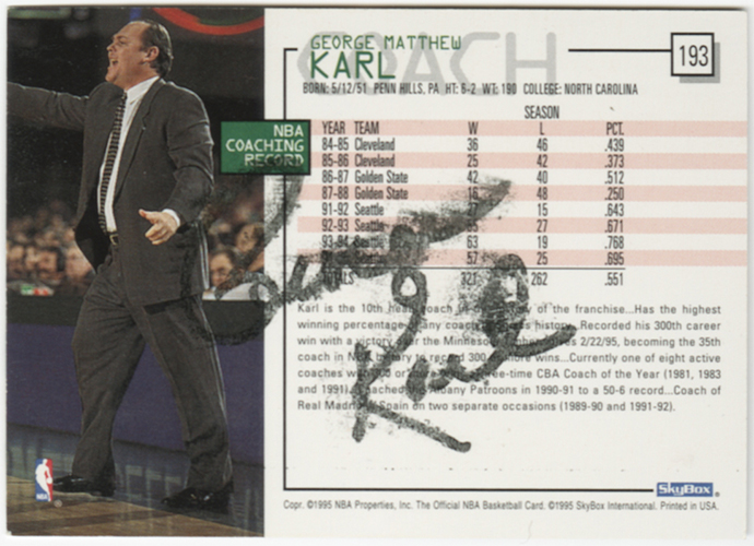 1995-96 Hoops #193 George Karl CO (Through The Mail, 2013)