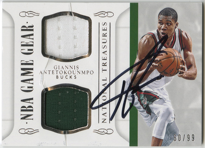 2014-15 Panini National Treasures NBA Game Gear Duals #GGDGA Giannis Antetokounmpo/99 (Through The Mail, 2018)