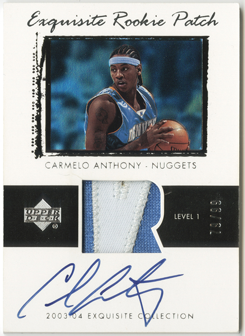 2003-04 Exquisite Collection #76 Carmelo Anthony JSY AU RC 79/99