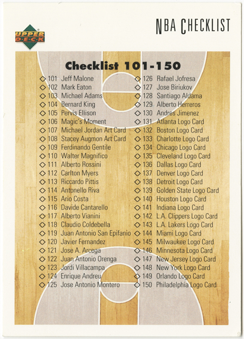 1991-92 Upper Deck International Italian #200 Checklist Card